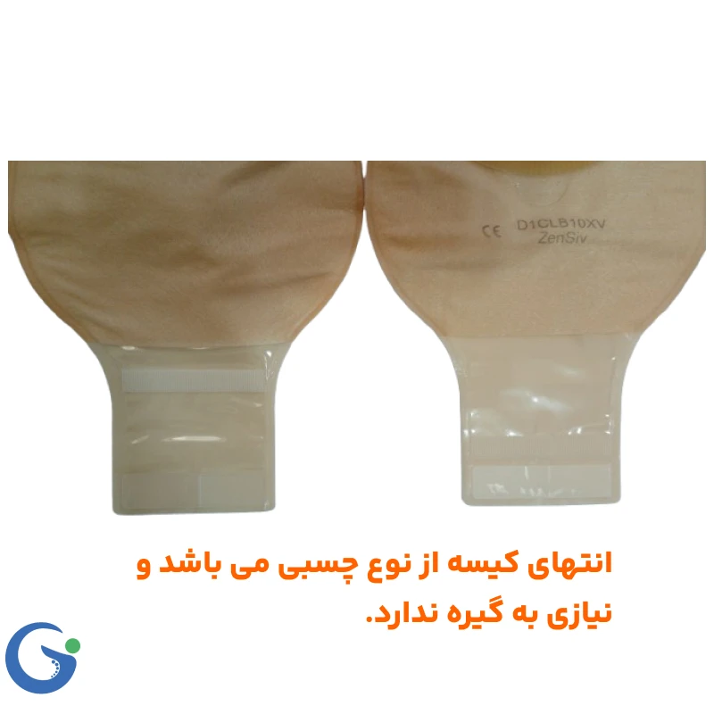 ته باز با چسب مخصوص: تخلیه آسانتر، خصوصاً برای افرادی با خروجی رودهای مایع یا نیمهمایع.