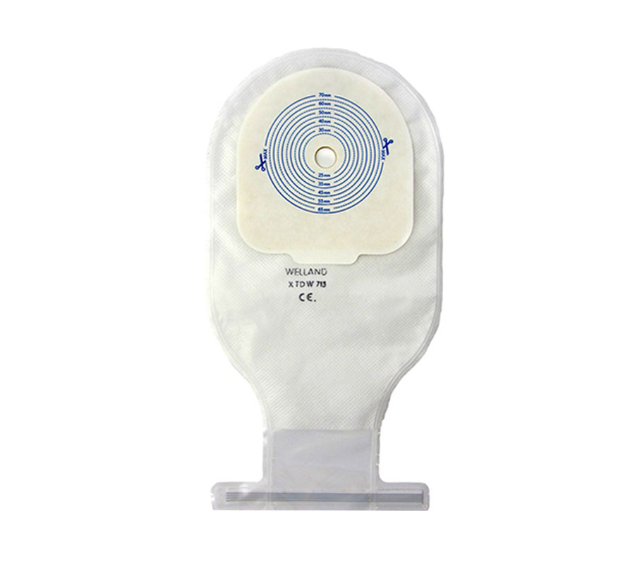 محصولی از شرکت welland می باشد و خصوصیات کیسه کلستومی جذب کامل بوها و گازهای خارج شده توسط تکنولوژی جدید فیلتر دو کربنه کیسه های welland می باشد که سیستم یک تکه-ته بسته شفاف کلستومی به هنگام ورزش و هنگام فعالیت جنسی کاربرد دارد و معمولا زمانی که مصرف کننده می خواهد روزی 2 یا 3 بار یا کمتر به تعویض کیسه خود بپردازد مناسب است و دارای کربن دوتایی مخصوص استفاده شده در این کیسه باعث پخش و کاهش تجمع گاز در داخل کیسه می گردد و کاهش خاصیت پانکینگ و انتقال راحت مواد دفعی به انتهای کیسه امنیت بالا و کاهش نشستی به دلیل استفاده از چسب پایه به دلیل خشک شدن سریع باعث جلوگیری از تعریق می شود. وجود یک لایه نرم باعث احساس راحتی بیشتر و افزایش زمان ماندگاری کیسه بر روی پوست می شود و در موارد آسیب شدید پوست اطراف استوما منع مصرف دارد,و حائز اهمیت می باشد که نوع شفاف مقرون به صرفه است.این کیسه فیلتر دار بوده و از چسب هیدروکلویید خالص استفاده کرده است. لایهی خارجی آن نرم و ضد آب است.